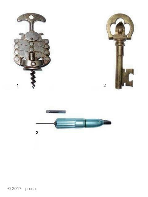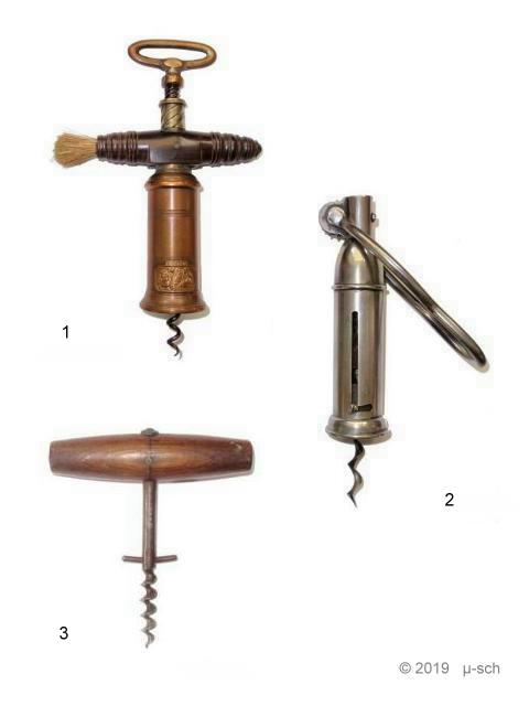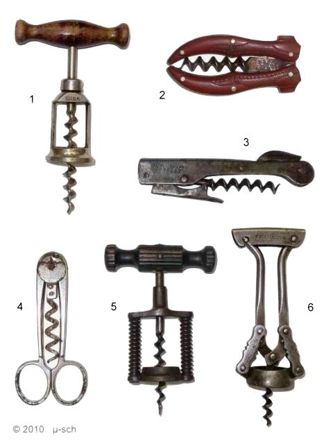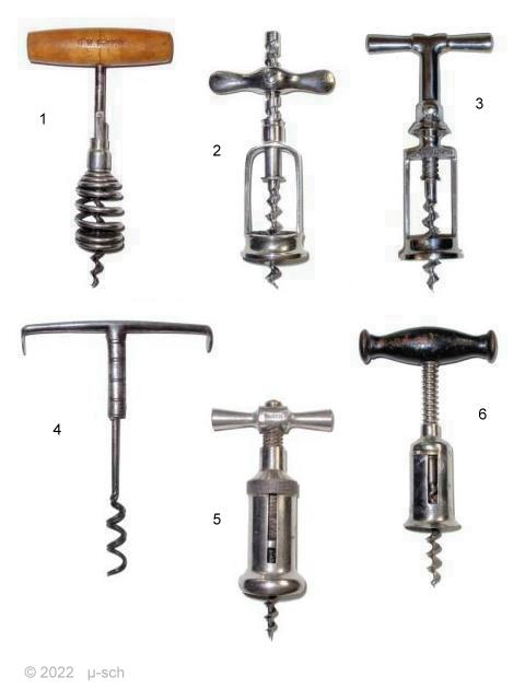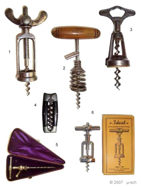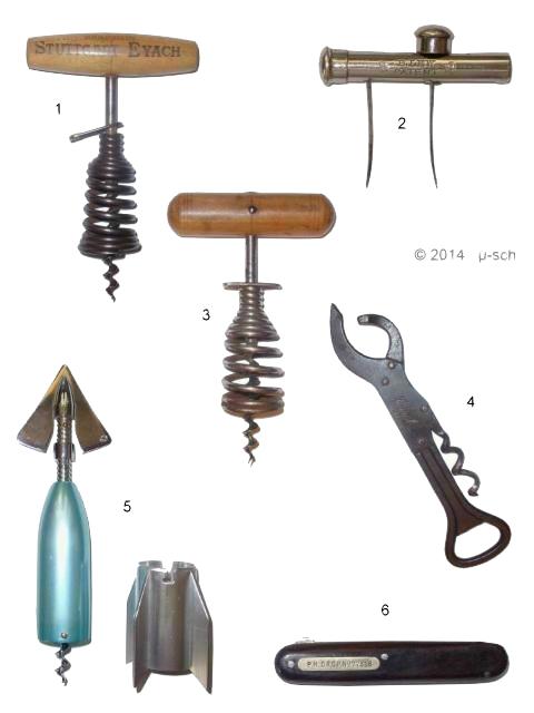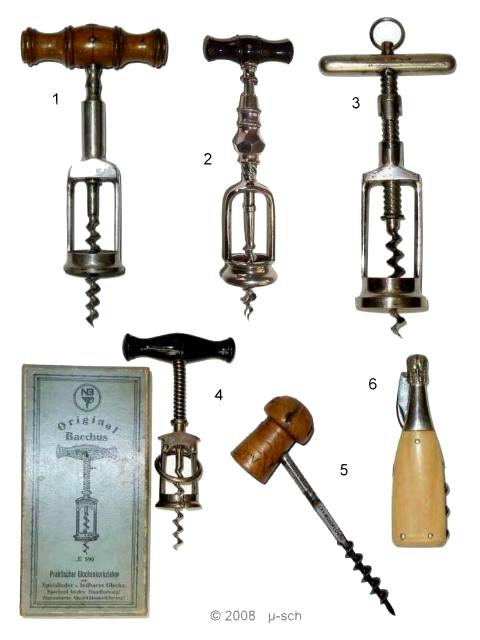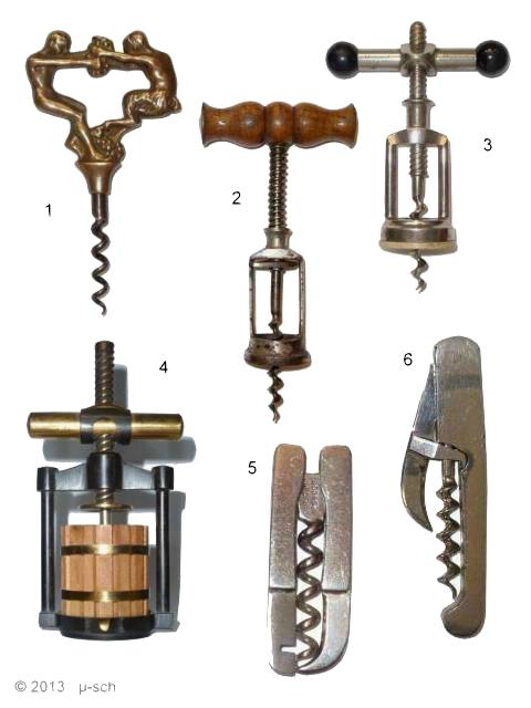 - Corkscrew with split frame and sliding ring to hold the frame together.