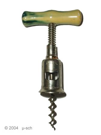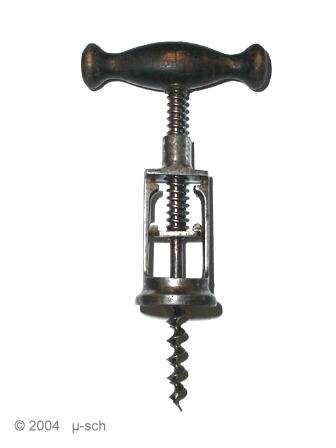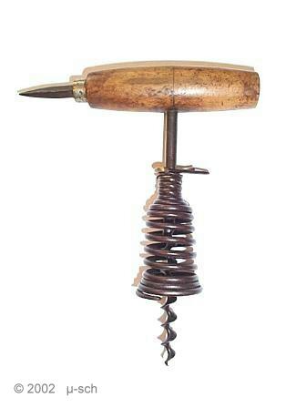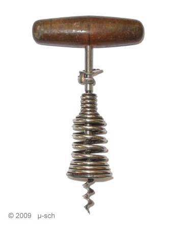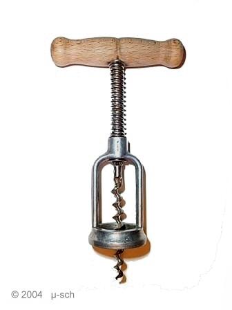 Corkscrew with aluminium frame and a spring, that gives the handle more pulling power.
