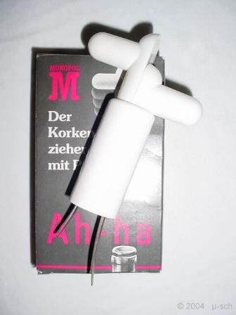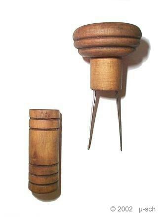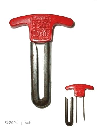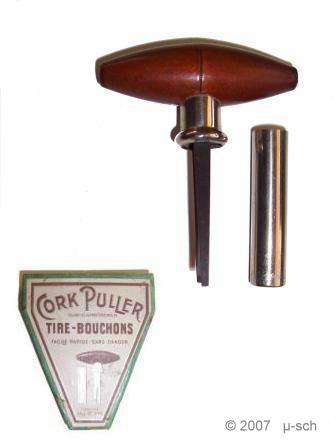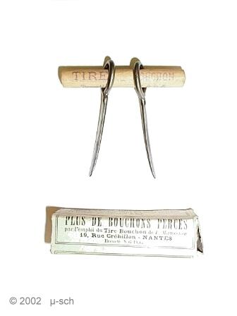 A very simple corkdrawer. Perhaps the cheapest ever made. In the patent description L. Maussion advices to use a small hammer to insert the prongs.