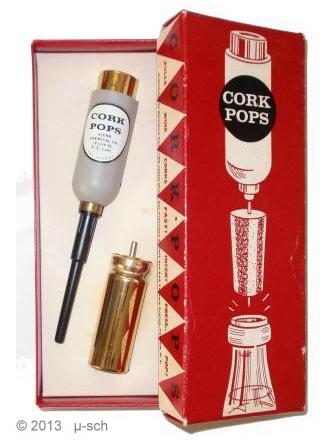 In needle cork lifters air is pumped manually or gas is injected into the area between the liquid and the cork. A needle with holes near the point is pushed through the cork.