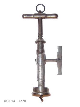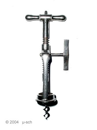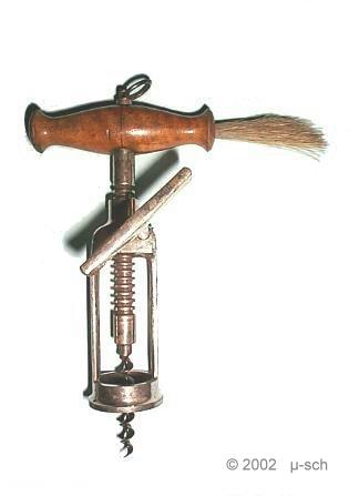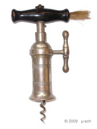 with a bristlebrush to take of wax or dust from the bottle before opening. You although find this kind of mechanic at the single and double lever corkscrews.